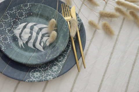 MANTEL BLANCO + RAYAS BEIGE